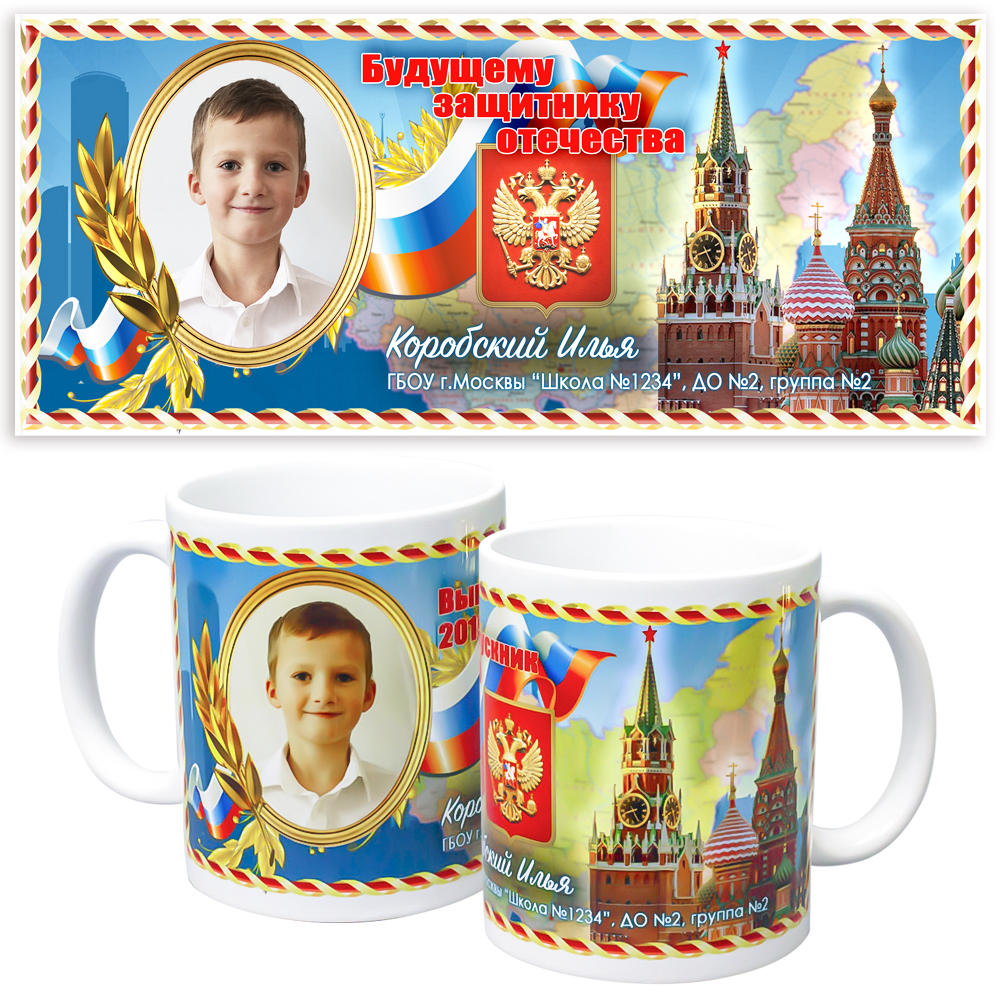 На кружке можно указать: Имя и от кого, например от девочек 4"Б" класса.